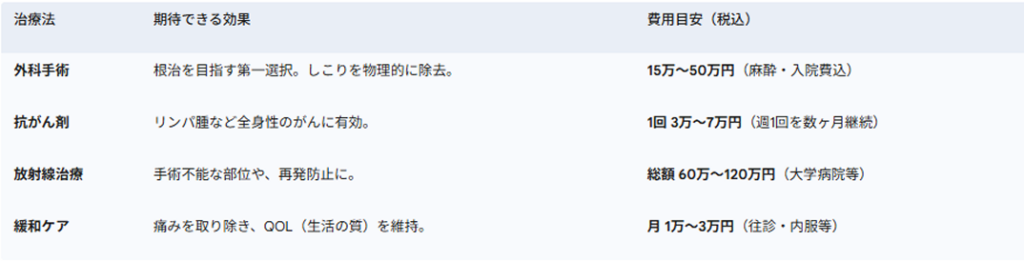 4. 主ながん治療の選択肢と費用目安